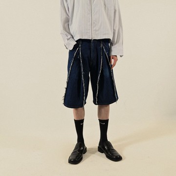 【NaSuBi Vintage】Upcycling拼接設計闊腿牛仔古著短褲