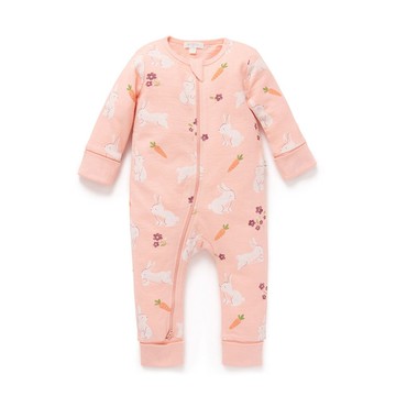 澳洲Purebaby有機棉嬰兒拉鍊連身衣/新生兒包屁衣 粉橘小兔