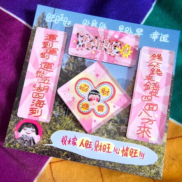 【迷你揮春貼紙包】一包兩張 掌心尺寸 原創插圖美國製高品質貼紙