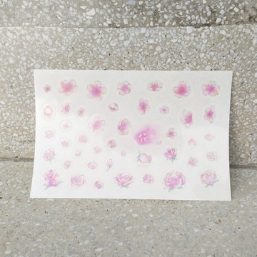 {139}粉紅玫瑰花櫻花,透明手帳刀模貼紙