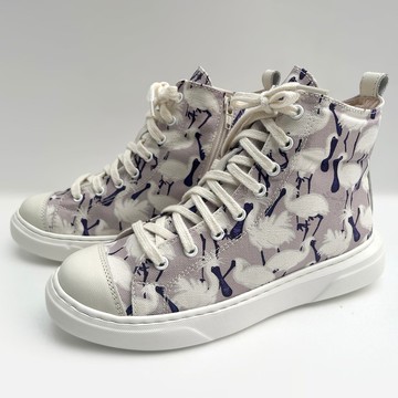 黑面琵鷺_手工印花帆布鞋 灰紫