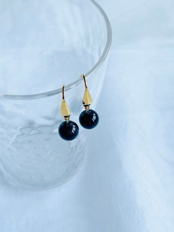 珍珠花苞長耳環 / 寶藍