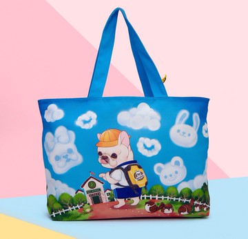 E.City_韓版圖案防潑水折疊單肩包購物袋