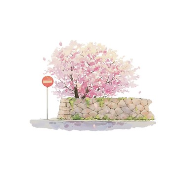 櫻花水粉畫,粉紅色,家居設計,風景,自然
