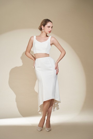 2025 Collection : The beauty of imperfection 不完美的美本季的概念來自於靈魂之美,強調細節中的獨特性,從設計的不規則到布料的自然流動,展現簡約與繁複交錯的魅力。即使有許多不完美的地方,但別懷疑,你的靈魂是最迷人且獨一無二的。/時裝系列:Ida - 這個名字表達快樂的情緒,此款素雅的剪裁與獨特性,展露出幸福面貌設計重點:上衣綁帶設計、裙前短後長▽上衣背後綁帶設計https://live.staticflickr.com/65535/54267024416_5c51be8003_b.jpg┃商品說明┃https://live.staticflickr.com/65535/54406928490_39c5c97777_o.jpg.上衣長(中心量):前 - 6 7/8吋.裙長(腰下中心處量):前 - 26 1/4吋,後 - 37 1/2吋.尺寸為手工測量,實際尺寸會有些許誤差為正常現象.成份:100% polyester.顏色:象牙白.內容:兩件式 - 後綁帶上衣+魚尾中長裙┃注意事項┃・提供修改服務,費用依修改細節而定。如需了解詳情,請洽相關人員.商品為接單後才製作,為保持品質,故需要較久的製作期,約25~45個工作天(不含例假日).布料下單後才會進行採買,少數情況會缺貨,有問題會另行通知.商品為下單後才進行製作,無提供退換貨服務,出貨前內部人員會詳細檢查,收到衣服若真的發現損壞請在24小時內立即告知,逾期不受理.為保持商品最佳狀態,請交給專業洗滌.商品照因螢幕不同會有些許色差為正常現象┃Q&A┃Q:是否能急單製作?A:可以,會收取商品價格的15%做為急單費,製作期可提早,請以實際詢問的出貨日為主Q:有實體門市可以試穿嗎?A:我們是工作室,非門市性質,需要試穿請預約Q:我看不懂尺寸表怎麼辦?A:我們使用美國尺碼(USA),若對尺寸有疑問可以提供三圍,並由相關人員為您推薦Q:是否有現貨可以購買?A:一般商品都需要訂製,現貨可以參考:SALE 白紗 https://www.pinkoi.com/product/Ci3H5KR4https://www.pinkoi.com/product/knWtiCsLSALE 多色晚禮服https://www.pinkoi.com/product/Tz3fgbzMSALE 配件https://www.pinkoi.com/product/e8NLeGCg┃Model 資訊┃身高178cm穿著S┃品牌資訊┃https://live.staticflickr.com/65535/53580369761_a9d7ef0339_b.jpg