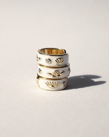 The exclusive Three of Luck ring is designed to symbolize happiness and wholeness in life. The ring contains 3 positive symbols: 🐚 Shell : the symbol of Venus, the God of Beauty and Prosperity👼 Cupid : the God of Love, Fulfillment, Kindness and Good wishes🧿 Evil eye : a symbol of warding off bad things and negativities. Preventing them from entering your life again-Made of 925 Sterling Silver with 14k gold plated \t-Skin friendly Jewelry, Nickel free, safe for sensitive skin. -Adorned with 2 pieces of 2 mm White Zircon Gems-Ivory white enameled-Can be resized (49-56 size EU)-Designed by Thai Designers and made by Thai Craftsmans.-Beautiful Jewelry paper box (Jewelry care card included) ***Meaningful Gifts Wrapping Service (Gift Wrapping , Silver Polishing Cloth , Greeting Card)https://th.pinkoi.com/product/xwtCdhc5--------------------------------------------------------------------------------------------------------------Estimated Delivery: 3-10 working days-Returns and Refunds Policy -We are able to accept return/refund requests if:◾️ The wrong item(s) was delivered to you;◾️ A damaged/defective item(s) was delivered to you; or◾️ You did not receive your item(s).We wish to highlight that we are unable to accommodate requests for cancellation, refund, exchange of products due to customer’s change of mind once the payment is accepted.Return RequirementsPlease contact us within 7 days of receipt of the item with your order number and details about the product you would like to return.Do ensure that your item(s) fulfils the conditions below:◾️ The item(s) must be in new, unused, unaltered and unworn condition◾️ The item(s) must be in its original state and packaging with the original product tags attached (including manuals, warranty cards, certificate of authenticity) and free gifts received with it (if any)Returns/ refunds will only be processed once the item(s) has been received and checked by us. Should the returned item not meet the above requirements, we reserve the right to reject the return and any request for a refund.