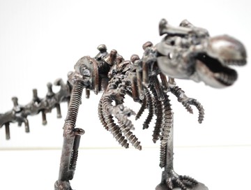 金屬模型收藏 暴龍雕塑 由金屬製成由回收金屬廢料和汽車零件製成的藝術品,由泰國專業工匠 100% 純手工製作。每件作品均由專業焊工精心逐一銲接而成,堅固耐用,不易損壞。此外,還塗有透明清漆,有助於防止生鏽並長時間保持其美麗。✔ 可自行站立,無需額外底座。🔹 產品資訊材質:螺帽、螺絲、鋼板等。尺寸:深 3.94 英吋 x 寬 7.87 英吋 x 高 4.33 英吋重量:0.88 磅;(約略值)顏色:金屬色,塗有透明清漆。特殊說明:每件作品均為手工製作,獨一無二,細節可能略有差異。🎁 適用於生日禮物週年紀念禮物結婚禮物送給朋友、愛人或作為獨特的居家收藏品。獨特新穎的設計,保證能給人留下深刻印象的禮物。🚚 運送於泰國透過泰國郵政生產和運送。預計運送時間歐洲:20–30 天 (若無海關延誤)美國:20–30 天 (若無海關延誤)亞洲:14–24 天 (若無海關延誤)提供追蹤號碼以供查詢包裹狀態。📦 於付款後 3 個工作日內寄出。📝 其他條款客戶需負責關稅和費用 (若有)。每件作品均為手工製作,細節可能略有差異,這使得每件作品都成為一件獨特的藝術品。若發現商品損壞,請於收到包裹後 3 天內提供照片。👉 我們將免費發送新的零件或重新寄送商品。⚠️ 注意:產品含有尖銳零件,請遠離兒童。