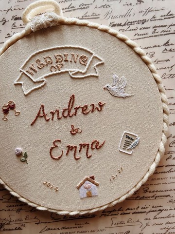 【客製手工刺繡掛畫】結婚紀念日 / 客製婚禮日期 / 新人名字