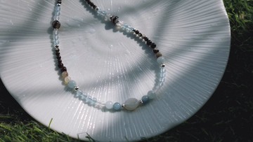 __在放鬆的時光裡,喝一杯香濃的海鹽拿鐵,感受那鹹甜的滋味所帶給你治癒的溫柔。__這件手工飾品將 海鹽拿鐵 概念巧妙轉化為視覺享受,主要運用月光石、海藍寶等礦石水晶製作出這款【多加海鹽】與大家相見!✨別被平凡束縛,讓這獨一無二的飾品為你增添亮點,散發美好氛圍。無論是搭配休閒服飾或正式穿著,它將成為你的時尚利器,為你增添更多自信與魅力。💖〚金屬材質〛 S925純銀(鎖扣、鍊條等)〚使用珠材〛 月光石隨行石、魔鬼海藍寶、海藍寶、白水晶、瑪瑙、咖啡貝殼珠、白瑪瑙、天然石圓珠、南瓜銀珠、空心圈、銀珠〚項鍊總長〛 45cm (含2.5cm延長鍊)〚保養須知〛// 避免觸碰香水、汗液或各類化學產品,也不宜長時間浸泡溫泉或海水,若碰到可用清水清洗並將其擦乾,或使用吹風機低溫吹乾。// 未配戴的飾品建議先用拭銀布輕輕擦拭,在完全乾燥情況下放入夾鏈袋中保存,否則容易使飾品氧化發黑。* 請不要等到發黑了才清潔,因為這時已經難以用拭銀布擦除。// 飾品的收納請分開裝,避免彼此刮花,然後置於陰暗處存放,切忌避免陽光直射或接近熱源。// 拭銀布因含有要藥學成分,所以切勿清洗,且只適用於金、銀、銅,不適用於合金的電鍍飾品,否則會使電鍍層快速脫落而顯現出金屬原本的顏色。// 配戴時盡量避免碰撞、大力拉扯、接觸粗糙表面或物品,以免造成刮傷。〚售後服務〛// 由於本館商品多為現貨商品且數量稀少,只提供商品退貨服務!// 拆封時請務必全程錄影,並檢查有無瑕疵,若有重大瑕疵須退換商品,請於收到商品後2日內到私訊問題,並提供拆封影片,我們會盡快協助您。// 退回商品需包裝完好且附件齊全,如有贈與商品也必須保持完整退回,若有發生損傷或遺失等情況,需要由消費者負擔部分處理費用。請特別留意 [ 以下事項不列入瑕疵範圍 ]⬇️• 天然石均有可能出現礦缺、裂紋或黑點,屬於天然現象。• 由於商品為手工製作,所以銀配件上會有些許細小刮痕。• 尺寸為手工測量,會盡可能給予正確數值,誤差±0.1~0.5cm左右。• 商品照片皆為相機實拍,因顯示器不同,故可能有些許色差。• 氧化 / 使用痕跡: 925純銀飾品擁有優秀的保色和耐磨度,但若無適當保養,在使用後仍會有使用痕跡與氧化情況發生。感謝你選擇暮穆,我們不僅提供商品,更希望為你打造一種融合時尚與溫暖的品牌體驗。在這裡,我們一同追尋未來時尚的步伐,讓你的獨特光芒閃耀不盡。✨💖**// 在簡單裡點綴一抹獨特 //**