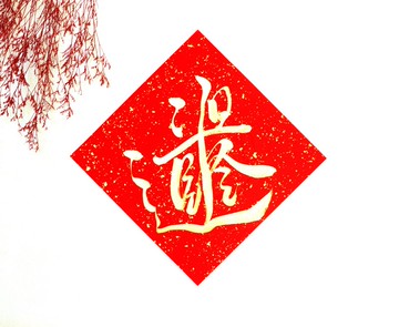手寫春聯(一字黑墨)。共6款。