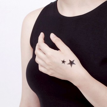 迷你小紋身藏在 耳下 手指 腳跟 偷偷自己欣賞小小塗鴉 星星 紋身貼紙 一組 2 張https://i0.wp.com/dl.getdropbox.com/s/lwpmli9p94dl4xr/z10746.jpghttps://i0.wp.com/dl.getdropbox.com/s/21ruatnsf57nn8x/z10747.jpg台灣紋身貼紙設計品牌 Surprise Tattoos∴ 使用方法 ∴① 先清潔皮膚保持乾燥,不塗任何保養品。② 將想要的圖案剪下,掀開最上層的透明膜。③ 把圖案紙浸泡在水裡約 10 秒。④ 將圖案紙的正面貼於皮膚上,定位後請勿移動。⑤ 用手指輕輕推平,並等待 30 秒。⑥ 最後小心將圖案紙輕輕移開。⑦ 完成後 30 分內請勿摩擦沖洗,避免太陽直曬。∴ 維持時間 ∴正常使用可維持 3 - 5 天細小圖案則維持 1 - 2 天∴ 清除方便 ∴使用化妝棉沾取嬰兒油濕敷,等待 20 秒後擦拭。∴ 材質安心 ∴ 紋身貼紙通過台灣 SGS 安全測試,油墨不傷皮膚不過敏, 三歲以上孩童皆適用。∴ 貼心提醒 ∴ 維持時間會因圖案大小及黏貼部位有所影響。建議貼在不易摩擦及出汗的部位,請勿用於肌膚敏感部位及眼周,使用後若有異常現象請立即停止,紋身貼紙請放置陰涼處保存。SGS 台灣安全標準檢測報告https://i0.wp.com/dl.getdropbox.com/s/g6rvkhw9qo6abem/SGS.jpg台灣設計・台灣製造