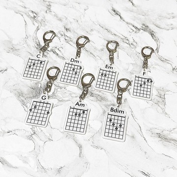 客人和我敲碗很久的鑰匙圈,終於製作好了🙌🏻~-因為製作了我是系列的社團、樂團徽章,很多客人都很喜歡,希望我能做成鑰匙圈~這次「壓克力鑰匙圈」,直接做了48款✨!-壓克力實體很可愛~厚度只有3mm,搭配D字扣,方便扣在鑰匙、包包上,每個尺寸都不同,長寬都約在3-8cm,如需要知道詳細尺寸,再私訊問我。📣 購買兩個吊飾,可以升級變成一組~將吊飾改龍蝦扣的長短鏈,也很好看!有需要更改成一組,下單後備註喔!※ 壓克力吊飾前後表面有「保護薄膜」,記得撕掉喔!※ 壓克力吊飾前後表面有「保護薄膜」,記得撕掉喔!※ 壓克力吊飾前後表面有「保護薄膜」,記得撕掉喔!-C調和弦系列:7款C和弦、Dm和弦、Em和弦、F和弦、G和弦、Am和弦、Bdim和弦-商品資訊材質:壓克力、金屬扣厚度:3mm尺寸:長寬都約在3-8cm(如需要知道詳細尺寸,再私訊詢問)