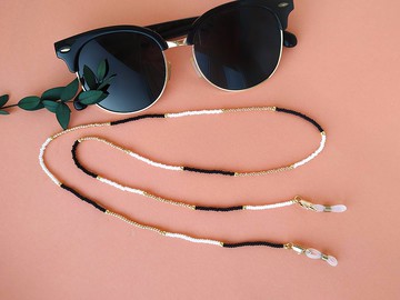 眼鏡鍊,太陽眼鏡鍊,眼鏡飾鍊這款精緻的眼鏡鍊由微小的 2 公釐白色、黑色和金色珠子手工製成。鍊子的兩端配有鍍金的鎖扣,以及用於固定眼鏡的橡膠配件。取下一條橡膠圈並扣於另一端的扣環上,此鍊子也能作為手鍊配戴。這款鍊子非常吸睛,是送給女友、母親或祖母的絕佳禮物。所有訂單皆以掛號信件寄出,並附有追蹤碼以便查詢包裹。非常感謝您的參觀!