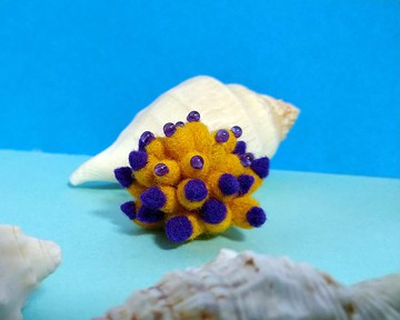 這是一個由多刺海蛞蝓製成的羊毛氈胸針。它是一種明亮的黃和紫海蛞蝓。尖端有一塊紫的石。◆ 寬度40mm◆ 高度40mm◆ 厚度(最大部分)33mm◆ 胸針金屬配件寬25mm◆ 重量 5.5g【材料】羊毛胸針金屬零件紫_