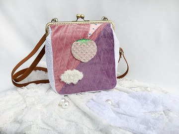 看!那是雲朵上的草莓水晶城少女指尖向著天空島,目不轉睛地妳在旅途中隨著浮雲敞開心胸仰望那幸福的粉紫色天空**設計理念** [ 浪漫 × 想像力爆發 ]開口邊的三角形,代表從小縫隙中蹦裂而出的想像力,傳達少女機靈與喜歡製造驚喜的個性。**「我想告訴妳,我們的設計巧思」**✔將簡單迷人又可愛的插畫立體化✔草莓結晶像冰霜融化一樣!https://live.staticflickr.com/65535/48442908286_5b3c3b2ef1_c_d.jpg✔刺繡、菱紋縫線,體現妳對**時尚的細節講究**https://live.staticflickr.com/65535/48442899846_422f8be656_k_d.jpg✔**「伸手就能摸到雲」**毛茸茸的雲朵設計https://live.staticflickr.com/65535/48442900161_72f0946beb_k_d.jpg✔選用**觸感柔順**的天鵝絨✔加了鋪棉,減緩碰撞、柔軟舒適https://live.staticflickr.com/65535/48443059282_c2ad011c25_k_d.jpg✔有插袋、大拉鍊口袋,**幫您做好收納!**✔**不用再翻找了!**活潑亮麗的大頭拉鍊,滑順不刮手✔袋內精緻,一打開包包就有好心情~https://live.staticflickr.com/65535/48442899806_2feb73ba66_k_d.jpghttps://live.staticflickr.com/65535/48518073486_9e3f1c4f23_k_d.jpg**自家研磨真皮背帶**✔ 不掉屑、可調整長短,可**單肩背、側斜背**✔ 寬1.5cm,提背時間延長✔ 質感加分https://live.staticflickr.com/65535/49009892063_60ec93a3fd_c_d.jpg**輕盈柔軟**,讓肩膀的負擔減輕不少https://live.staticflickr.com/65535/48492208791_35cc7ccb86_k_d.jpg實用性強,讓妳**氣色佳**又**獨特迷人**https://live.staticflickr.com/65535/48492208431_6514a8973c_k_d.jpg放在家中也一定是出眾的裝飾品https://live.staticflickr.com/65535/48443050232_d137f6d7dc_c_d.jpg**尺寸** 包包:寬 25 cm 高 23 cm 厚8 cm口金:20 cm背帶:真皮 寬 1.5 cm 長 60~120 cm內袋:插袋2個、拉鍊口袋1個**[ 注 意 事 項,接 受 者 再 下 單 ]**✦小線頭、小歪斜、印花裁切位置不盡相同皆屬手製獨一無二的特色,並非瑕疵。✦每台電腦、手機螢幕呈現顏色皆有差異,請以實際商品為主。 ✦手工測量誤差範圍0~1cm。**[ 客 製 化 服 務 ]** ✍喜歡本館設計包款上的布料、口金,可來訊討論訂製喔!✍客製訂單是設計師專屬打造,無法退換貨。✍取消客製訂單者,將為永久拒絕往來戶。**https://www.pinkoi.com/store/wind-garden (風皿設計)開啟你對設計美感的眼界~**✦有任何問題,設計師都歡迎您的來訊!───感謝您的耐心閱讀───