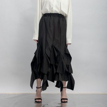 荷葉斜剪接設計緹花長裙-黑 S/M