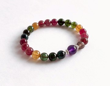 https://live.staticflickr.com/65535/52067972128_1349076ea5_b.jpg碧璽碧璽又稱為電氣石,英文名稱Tourmaline。碧璽晶體的顏色多達15種之多。其中更以通透光澤的蔚藍色、鮮玫瑰紅色及粉紅色加綠色的複色為上品。碧璽由於顏色鮮艷、多變,自古以來深受人們的喜愛。碧璽目前是僅次於鑽石、紅寶、藍寶、祖母綠的有色寶石之一。在碧璽的顏色上,以鮮艷的藍色,粉紅色,綠色碧璽最為珍貴。由於碧璽屬多冰裂多棉絮的品種,所以碧璽手鍊和項鍊,或多或少的會有些冰裂和棉絮,這也是鑑別真假碧璽的重要依據。電氣石,又稱「碧璽」,具有很高的環境凈化和調理人體健康的價值,也是目前人類所發現的唯一一種既帶磁場又帶電場的能量石,是具有環保養生雙重作用的天然礦石。碧璽在常溫下,可以有效的減弱和中和如今人們生活中無處不在的電磁輻射,減少天乾物燥時發生的人體靜電現象。中國古語常常說女性戴碧璽旺夫旺子,有部分原因就是古人發現一家之中女性佩戴碧璽時,全家老小的身體健康狀況比之沒有碧璽的家庭更加理想、良好。碧璽具備天然能量寶石的特性,具有永久放射遠紅外線的特點,運用於人體,能暢通人體經絡。因為碧璽顏色鮮艷多彩,常常為女性所佩戴。碧璽是所有電氣石的統稱。由於碧璽的顏色多種鮮艷,所以可以很輕易的使人有一種開心喜悅及崇尚自由的感覺,並且可以開拓人們的心胸及視野。碧璽也可以激發創意,帶來無限的靈感及思緒,並且冷靜、清晰、及集中的力量,更可以使你行事妥當,全力以赴,並且可以放射出吸引愛情及友情的頻率。碧璽又可以放射出親和力磁場,對於有領袖氣質的人,自然可吸引更多的人往你身上靠攏,並且可融化人與人之間的隔閡。https://live.staticflickr.com/65535/52068442130_825d74bb66_b.jpghttps://live.staticflickr.com/65535/52067961226_a030da9579_b.jpghttps://live.staticflickr.com/65535/52067971798_f1152f26e1_b.jpg紫水晶(amethyst)紫水晶主「智慧」與「財富」,所以相當受歡迎。手上佩戴紫水晶,有招財、招貴人 、文思泉湧的說法。用腦的人適宜佩戴紫水晶,幫助人在思考上精神集中。與腦波的頻率相近,鎮定安神、緩和心性,助於開發 智慧、潛能、增強記憶力。1. 鎮定安神 、增進睡眠品質、 開發智慧 、激發創意。2. 對應眉輪,加強記憶力,精神集中。3. 可廣結人緣,適用對象:藝術、文字工作者、業務工作者、學生。紫水晶是水瓶座的守護石和誕石,代表靈性、精神、高層次的愛意,可作對仰慕者的一種定情物、信物。紫水晶作為傳統意義上的護身符,通常可驅趕邪運、增強個人運氣,促進智能,平穩情緒,提高直覺力、幫助思考、集中註意力、增強記憶力,給人勇氣與力量。紫色主宰右腦世界,即直覺與潛意識。紫水晶的頻率對應眉輪,可以開發兩眉間的第三眼,鎮定安神 . 刺激腦部,激發創意,精純、細緻、綿密的能量讓人如沐春風。紫色是高貴的代表,紫色的手鍊代表著高貴純潔,至死不渝的愛情。紫水晶常做為情侶的定情石,在西方的國家裡紫水晶是愛情的守護石,能夠賦予情侶,夫妻對愛情的至死不渝的堅定信念,貞潔,誠實,和勇氣。情侶佩戴紫水晶手鍊除了可以增加互相之間對愛情的信任和忠誠之外,還有助於幫助他們堅守節操,讓他們控制自己的情緒,讓他們保持冷靜,在適當的時候才做適合的事情。在其他方面,紫水晶具有助於消除人的不良情緒,可以減少人的霸氣,讓人變得更加心平氣和,增加認得包容心,容忍性。長期佩戴紫水晶手鍊可以讓夫妻 . 情侶之間更加恩愛,相處更加和諧融洽。紫水晶為二月生辰石,代表純潔和諧,睡眠時置於枕下,可激發思考及睡眠安泰。接觸紫水晶能提高靈性,增長智慧。因此有些在求學或者正考試運的人,也很適宜佩帶。古人認為可以避邪、護身,帶來幸福和長壽,又可以解毒與避免受傷,如護身符。https://live.staticflickr.com/65535/52068442075_3fab4cf348_b.jpghttps://live.staticflickr.com/65535/52067972113_a85c188e7a_b.jpg[ 商品特色 ]一物一圖 . 原件寄出 .天然礦石 濃彩碧璽 .色澤濃郁 . 漸層色系排序 .結合 烏拉圭紫水晶 襯托 .925純銀 輕輕點綴 .細緻 . 風雅 . 值得收藏 .材質:天然礦石 彩碧璽 . 烏拉圭紫水晶 . 925純銀 . 日本彈力絲線 .尺寸:彩碧璽 : 7.8 mm烏拉圭紫水晶 : 9.2 mm照片上手鍊的手圍 : 15.8 公分 .可調整手圍 .穿戴手圍最大只到 16 公分 .可依顧客提供尺寸 . 縮小手圍 .[ 小提醒 ]請告知設計師手圍尺寸 . 淨手是幾公分.由設計師放縮適合的尺寸.https://live.staticflickr.com/65535/52067961171_be4f9f9d1c_b.jpg[ 注意事項 ]1 . 礦石請避免高溫,硬物碰撞。去海灘遊玩、曬日光浴、泡溫泉等情況下不宜應佩戴首飾,平時的佩戴把玩接觸摩擦,人體皮脂可以對其內部結構,起到一定的保護作用,使天然礦石更加光澤漂亮 。2 . 銀飾平時不配戴時,可放入夾鍊袋中收藏 . 可用牙膏和清水 清洗 . 清洗完請把水份吸乾 。3 . 照片已盡量還原實品色彩 . 色澤可能因每一個顯示器螢幕不同 . 會有些色差 . 以上請考慮其中 。4 . 館內商品照片和介紹 . 已盡量敘述了商品的狀況 .若有想了解的 . 可聯繫詢問 。
