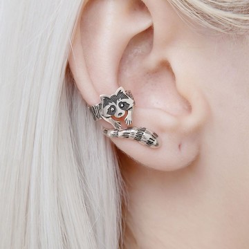 925 純銀浣熊耳骨夾 無需耳洞 浣熊耳環