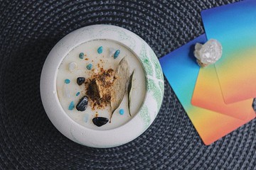 透過水晶跟卡牌給予的連結,抽出三張蠟燭主人目前所需要的祝福力量,以及補充相對應的脈輪能量。完整的精油、藥草和水晶配方只會分享給蠟燭主人知道,此配方也不會再製作給其他人。卡牌的解讀會手寫成一張卡片一併寄給蠟燭主人。製作客製化蠟燭僅需提供姓名,毋須填寫額外問卷,每顆客製蠟燭都會是不同的精油和藥草配方,圖示為範例,實際收貨並非同一款蠟燭。材質|水泥、大豆蠟、台製木芯、專業調理級天然精油尺寸|底部10*高4.5cm時間|約燃燒15+-hrsenergy candle並非主打擴香型的香氛蠟燭,使用純正天然的精油味道會比合成香精清淡,2.5%精油是適當的比例。能量蠟燭使用說明 ①準備空白紙一張 ②寫下自己名字跟願望 ③觀想願望成真的景象和感受,然後輕吹一口氣在蠟燭上 ④將紙壓在蠟燭下,點燃蠟燭*客製化香氛不會事前告知配方,恕不因香味不符預期而退換。*每顆水泥容器皆手工製作,渲染模樣皆不相同;小缺口或不平滑的表面屬正常現象,可接受再下單。*全手工製作,大約需耗時3-4週,再請訂購者斟酌。|注意事項|•第一次點燃時整體表面呈液體狀再熄滅•燃燒時間不超過4hrs避免溫度過高•蠟燭僅剩不足1cm時建議停止使用•點蠟燭前將燭芯修剪至0.6cm•請在視線內使用,旁邊勿放易燃物品•避免放在出風口下•睡前請務必熄滅燭火