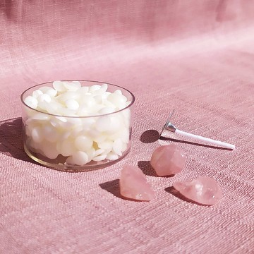 享受微醞燭光的美好日常想像Enjoy the beautiful daily imagination of slightly romantic candlelight.蠟燭中加入水晶元素,將天然療癒能量注入生活。💎 粉水晶 (Rose Quartz) 招桃花 x 親和力▋材料包蠟25g (大豆蠟、白蜜蠟)、粉水晶3顆、2.5cm燭芯1支、圓形蠟燭座1個▋香氛介紹天然大豆香 Soy flavor (味道是淡淡的天然大豆香,如果喜歡香氛的味道,可以在製作時,自行加入香精,增添香氣囉! )▋蠟燭使用方法點燃蠟燭前,請先修剪燭芯長度至大約 0.8 cm。請使用滅燭罩熄火,阻絕空氣,避免產生燒焦味與煙霧。蠟燭須放置於乾燥通風處,勿放置於悶熱、潮濕之地方。此款蠟燭配方為柱狀蠟燭配方,因此蠟燭凝固後,可將蠟燭取出容器使用。