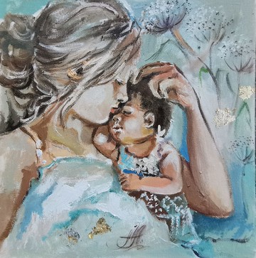 這幅精美的 40x40 公分(16x16 英寸)畫作捕捉了母親和嬰兒之間的溫柔時刻。他們之間的溫暖以鮮豔的色彩完美地描繪出來,喚起一種愛與寧靜的感覺,非常適合任何家居裝飾。紙板畫布,不包括框架。