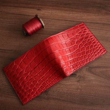 比照愛馬仕規格,使用極細的2.45mm斬具手縫製作,所有夾層完全使用皮革,不使用裡布,包括卡層內裡此短夾為測試版型製作,製作工藝完美,但鱷魚皮革本身有幾處微小瑕疵,若要求完美,請另行討論訂製**由於國際公約限制,台灣以外地區購買須自行向貿易主管機關申請輸入許可**[**規格**]1鈔票層、8卡層、2暗袋層尺寸:11 x 9 (cm)表皮:鱷魚皮內裡:德國製epsom壓紋小牛皮、法國製山羊皮[**產地/製造方式**]台灣/純手縫