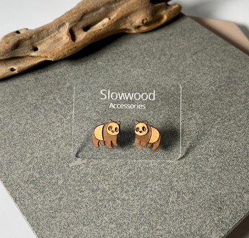 【熊貓】木製動物系列耳環