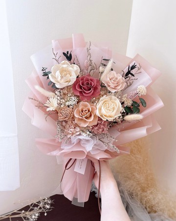 Dreams come true 永生花/乾燥花Ig🔍:dreamscometrue_flowerhttps://live.staticflickr.com/65535/53243863355_1a345b9619_k.jpg**❖ 關於運送 ❖****• 出貨時間:週一至週四(不包含假日與國定假日)**- 商品皆使用**中華郵政**寄送- 照以往經驗出貨後約第 2 - 3 天到貨**(不包含假日與國定假日)**- 僅能告知**出貨日**,無法保證到貨日期與指定日期到貨,還請見諒🙏🏻- 實際運送時間需看各郵局情況https://live.staticflickr.com/65535/54793218853_33b643036a_b.jpg⧔ 玫瑰序曲https://live.staticflickr.com/65535/54849140182_6d3efab9ab_b.jpghttps://live.staticflickr.com/65535/54850312455_b722d20543_b.jpghttps://live.staticflickr.com/65535/54849140292_a6657ed9ba_b.jpghttps://live.staticflickr.com/65535/54849140187_e41c8310a1_b.jpghttps://live.staticflickr.com/65535/54850247224_032d8473a4_b.jpghttps://live.staticflickr.com/65535/54850527525_420a9b2d6f_b.jpghttps://live.staticflickr.com/65535/54688596430_f40a8a5d44_b.jpghttps://live.staticflickr.com/65535/53648419372_9312a6db40_c.jpg附贈花束提袋**|永生玫瑰花束 • 玫瑰序曲|**- 中型花束- 採用日本進口永生玫瑰🌹- 索拉/蓪草花可滴上精油或香水擴香( 無提供精油或香水,需自行滴上 )含包裝紙約寬 30-32 cm x 高 43-45 cm※ 尺寸大小建議拿尺量為準,勿以想像判斷大小**❖ 購買須知 ❖**⧔ 商品為接單後開始製作⧔ 無法今日下單,隔天出貨,還請提早下單,預留運送時間 🙏🏻⧔ 客製商品需提前1-2週討論**❖ 加購區 ❖**https://live.staticflickr.com/65535/54017548040_6b618f598c_k.jpg【代寫服務】- 可直接備註或私訊卡片內容- 因小卡空間有限,限 **「50 字」** 以內 ** ❖ 請詳閱以下說明,能接受再下單喔,謝謝🙏🏻 ❖**** 【 關於花材 】**• 就跟人的長相皆不同一樣,天然花材的花形姿態與大小也都不會一樣喔• 商品皆會仔細包裝,如在運輸過程有些許花材掉落都屬於正常情況,還請見諒• Dream已盡力讓圖片接近實體顏色,但仍會因螢幕顯示器或進口批次不同導致色差,顏色以實體為準,圖片僅供參考,若非常介意色差問題,建議到實體店面購買,會比較符合您的需求**【 關於花盅 】**• 玻璃為手工製作,有時難免有些許瑕疵,如燈光下出現細微刮痕、小氣泡或描邊不均等,都屬於正常工藝痕跡**❖ 保存方式 ❖**• 永生花 & 乾燥花,怕潮濕與水,請放置於乾燥通風處,最佳保存濕度為50-65度(濕度高可能會有發霉、透明化及染色等情形)• 環境較潮濕時,可開除濕機或冷氣 • 避免陽光直射,日曬可能會使花朵脆化或褪色• 視保存情況,最佳觀賞期可達1 -2年(花朵會隨時間而風化褪色)**❖ 售後服務 ❖**開封請錄影,收到商品後若有任何問題請先別生氣留負評,可私訊反映問題,Dream相當在意每位客人的感受,定會盡力幫您處理