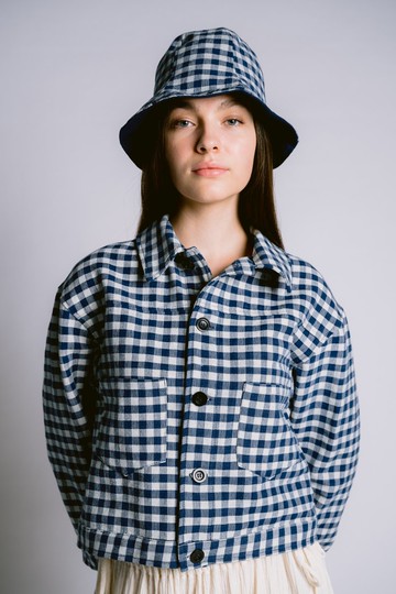 (S) diamondlabel o質感棉質純棉雙色滿版印花長袖藍色外套