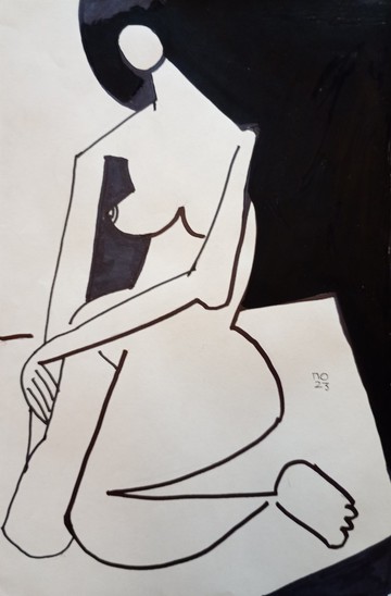 立姿女性裸體抽象畫 壓克力、墨水繪圖