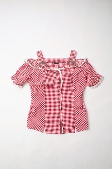 HUSH PUPPIES 復古紅、白、灰格紋襯衫 女款荷葉邊棉質上衣 XS