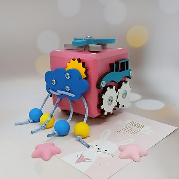 适合女孩的粉色蒙特梭利忙碌方块 宝宝感官发展玩具 便携益智旅