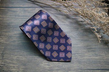 深藍色幾何圖形小方塊領帶真絲商務型男領帶