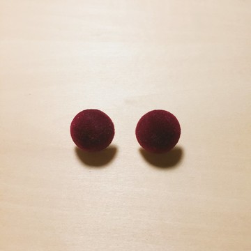復古酒紅絨布丸子耳環