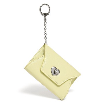 愛心鎖鑰匙圈 多功能卡夾零錢包 淺檸檬黃