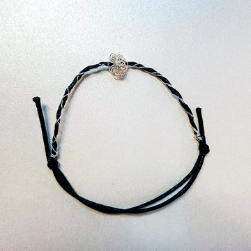 / 商品說明及故事 /由美國進口藝術銅線、台製仿皮繩組成的伸縮手環,軟金屬纏繞區段可微調塑形。/ 優惠 /歡迎關注瑩羱的「設計館最新動態消息」來得知是否有最新優惠活動哦!/ 尺寸、規格、大小 /1.手掌圍約18.5(±0.5)cm /適合手圍約15~17.5cm(手圍可調整伸縮)2.金屬線直徑寬約0.41mm/0.81mm3.仿皮繩直徑約1mm/ 材質 /1.美國進口藝術銅線 - 銀2.仿皮繩/ 仿皮繩簡介 /瑩羱使用的仿皮繩是臺灣在地生產的廠商,仿皮繩的表皮有編織紋路屬於軟式仿皮繩,經時間及個人使用情況多少會脫蠟,用打火機燒會呈現碳化反應(非尼龍材質),所以孔洞較小的珠飾配件皆不適合仿皮繩(如玉珠、部分琉璃珠等)。/ 包裝 /此款**手鍊**附禮盒一份,如此款禮盒用盡或缺貨,原商品圖的禮盒款式轉為參考用,實際禮盒以實物為主,特此告知。/ 攝影簡介 /本館圖片皆以實物拍攝,攝影光源使用LED光,攝影器材及電腦螢幕多少會影響色彩呈現,特此告知。如果需要看此款更多角度的展示歡迎到瑩羱部落格觀看。/ 使用及保養方式 /1.配戴時須將手環套入手腕,調整左右之活結鬆緊以配合您的手腕尺寸。2.由於含有金屬飾品,故請在不配戴時使用夾鏈袋封存,洗澡時請務必取下。3.**貼心提醒您,世界上唯一不會退色或變色的金屬是純金哦!而純金的價格不斐。**/ 設計師及品牌簡介 /瑩羱是一位喜愛玉石及晶瑩材質的平凡人物,對手作飾品有莫名迷戀的傾向。更多關於瑩羱的訊息,歡迎以「瑩羱」作為關鍵字於Google或Facebook搜尋。產地/製造方式DESIGN&PRODUCT OF TAIWAN ; MADE IN TAIWAN & U.S.A.