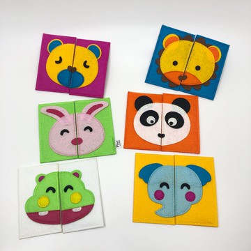 動物配對卡分 類:啟蒙玩具配 件:六種動物拼圖學習目標:圖形區辨、認知能力、觀察力玩 法:1.砌出六組圖案,增進思考敏捷度。2.認識動物名稱,增進認知能力。3.學習顏色名稱。