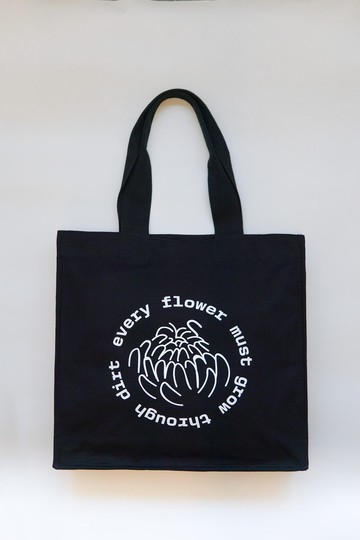 這款手提袋採用 100% 純棉布料製成,正面印有Every Flower Must Grow Dirt的圖案。它還配有內部小口袋。男女通用香港少量生產尺寸:43公分 (W) x 43公分 (L) x 13公分 (D)肩帶:56.5cm