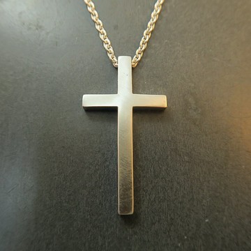 【設計介紹】最簡約傳統的十字架設計,謹代表堅定的信仰。主體厚實且尺寸偏大,是較適合男性的款式。【其他須知】◆本商品為接單後製作,平均需等待七個工作天後寄出(不含例假日)。◆銀鍊需另外選購,建議搭配寬1.8mm以上的中性銀鍊。基本款銀鍊可參考:https://www.pinkoi.com/product/xBE67M8q◆主體長約4cm/寬約2.3cm。◆我的銀飾皆使用999或925純銀手工打造,全無電鍍處理,電鍍層久了以後會剝落褪色,而設計師喜歡純材質的耐用感,因此除非客人特別要求都是不電鍍的。【材質】925純銀【包裝與配件】◆牛皮紙質感的盒子與紙袋。◆拭銀布。【銀飾保養】◆經常配戴你的飾品,皮膚上的油脂可以提供飾品一層保護,讓它不易氧化變黑。◆若長時間不配戴,可以放入夾鏈袋等密封性較好的容器中。◆避免與其他金屬飾品同時配戴,容易摩擦撞擊產生刮痕。◆勿浸泡溫泉,海水以及化學藥劑,以免金屬產生化學變化導致變黑。◆平時清理可用少許沙拉脫輕輕搓洗,再以清水洗淨,並用吹風機吹乾即可。【銀飾保固及維修】我的銀飾皆提供終身保養服務(氧化變黑的復原),您僅須負擔來回運費,但若是表面損傷復原或金屬斷裂/變形等的維修等則需另外報價。【產地/製造方式】台灣/手工製作