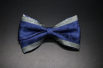 藍色暗紋真絲領結/復古花紋百搭蝴蝶結