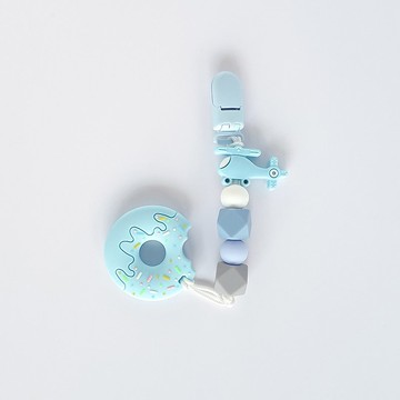 5顆 無字 直升機 藍色甜甜圈固齒器 / 客製化奶嘴鏈