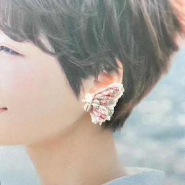 Trace 老痕跡多層復古感粉白蝴蝶耳環