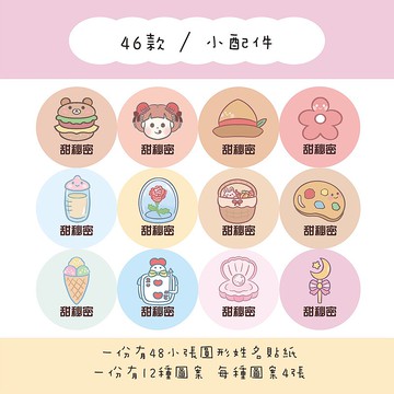 甜秘密客製化圓形姓名貼紙 / 一組48張 / C27綜合組款