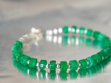 綠瑪腦-五月誕生石925 SILVER 棋子餅 綠瑪腦2X4mm- 細緻手鏈