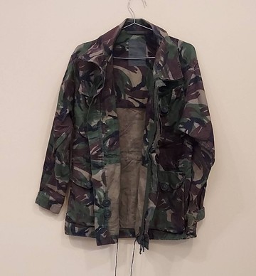 英國公發迷彩防風拉鍊夾克 軍用外套大衣B款○英國製,老品完整乾淨○尺碼160/96,肩寬51 胸寬62 腰圍60 袖長56 衣長80cm○六大口袋,2側拉鍊式胸前口袋,4個鈕釦式大口袋,隨身物品收納方便