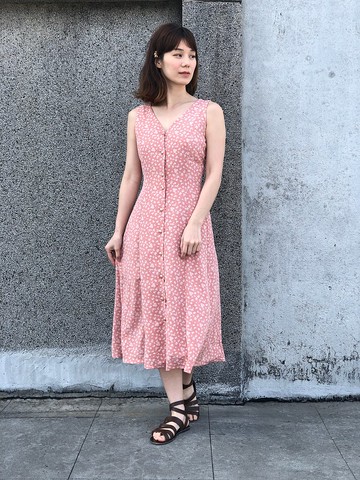 粉紅小碎花無袖洋裝