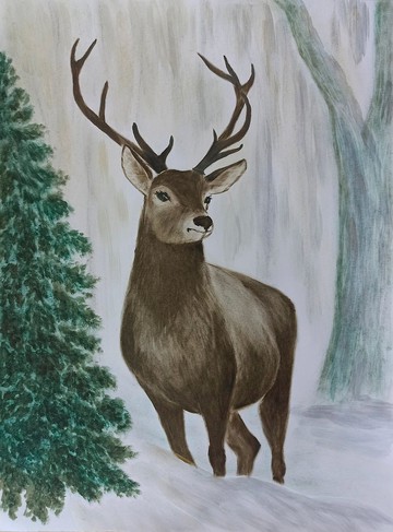 冬季雄鹿油畫 原創丙烯雪景鹿 北歐牆面藝術 作者 RinaArtSK