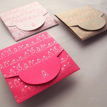 這款可愛兔子主題迷你信封既可用作利是封,也適合一般信封用途,內部可書寫留言!尺寸:摺疊後9.5cm x 9.5cm採用燙金工藝三種顏色:桃紅、粉紅、金色每種顏色各2個,共6個信封