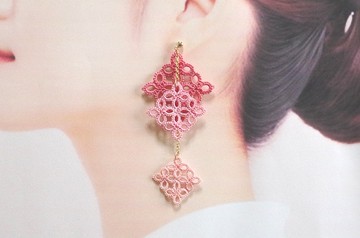tatting lace 三色方塊耳環・粉色