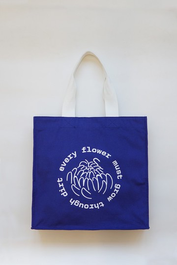 這款手提袋採用 100% 純棉布料製成,正面印有Every Flower Must Grow Dirt的圖案。它還配有內部小口袋。男女通用香港少量生產尺寸:43公分 (W) x 43公分 (L) x 13公分 (D)肩帶:56.5cm
